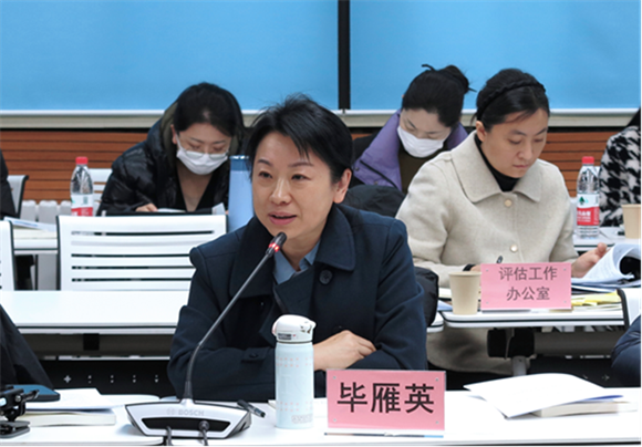 李亚丽首先介绍了2022年4月向教育部提交审核评估申请以来我院迎评准备工作进展情况,指出新一轮审核评估立德树人导向更加鲜明、“两类四种”评估分类指导更加明确、“质量共同体”意识更加突出,强调全院各单位要深刻理解审核评估工作的重大意义,齐心协力做好评建改工作。