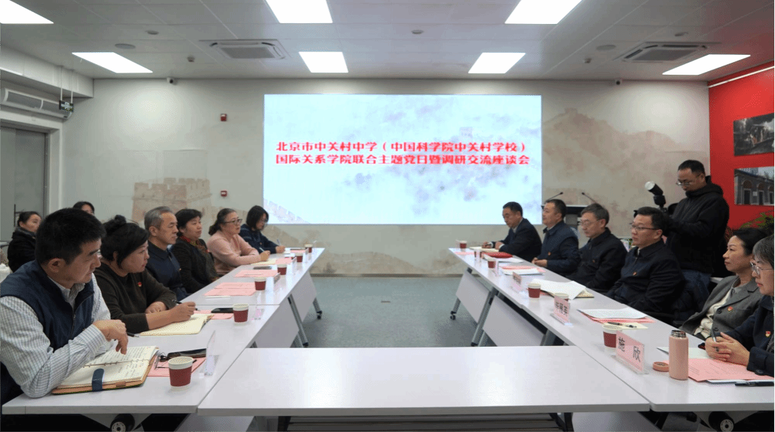 为深入学习贯彻习近平新时代中国特色社会主义思想,全面落实立德树人根本任务,推动高校与基础教育阶段党建工作深度融合,12月2日下午,我校与北京市中关村中学(中国科学院中关村学校)在忠诚教育室联合开展主题党日活动暨调研交流座谈会。我院党委负责人李海鸥,党委常委、副院长许可、毕雁英,党委专职副书记、纪委书记崔国贤,北京市中关村中学(中国科学院中关村学校)校长、党委副书记陈恒华,党委书记、知春分校执行校长祁建欣出席本次活动,双方党员教师代表齐聚一堂,共话党建创新路径,共商协同育人蓝图。