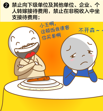 禁止在接待费中列支应当由接待对象承担的差旅、会议、培训等费用,禁止以举办会议、培训为名列支、转移、隐匿接待费开支;禁止向下级单位及其他单位、企业、个人转嫁接待费用,禁止在非税收入中坐支接待费用;禁止借公务接待名义列支其他支出。