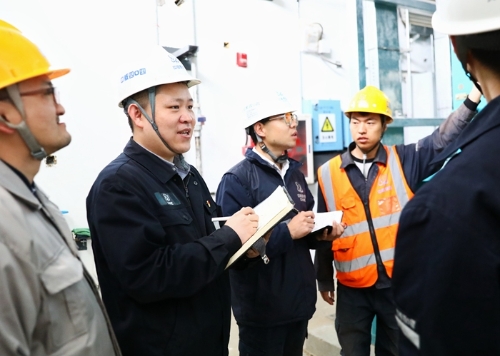 图为黄啸(左二)在项目建设现场监督检查。范昕宇 摄