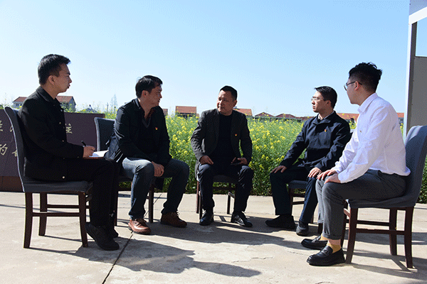 图为谷超(左二)正在回访被处分同志。崔莉 摄