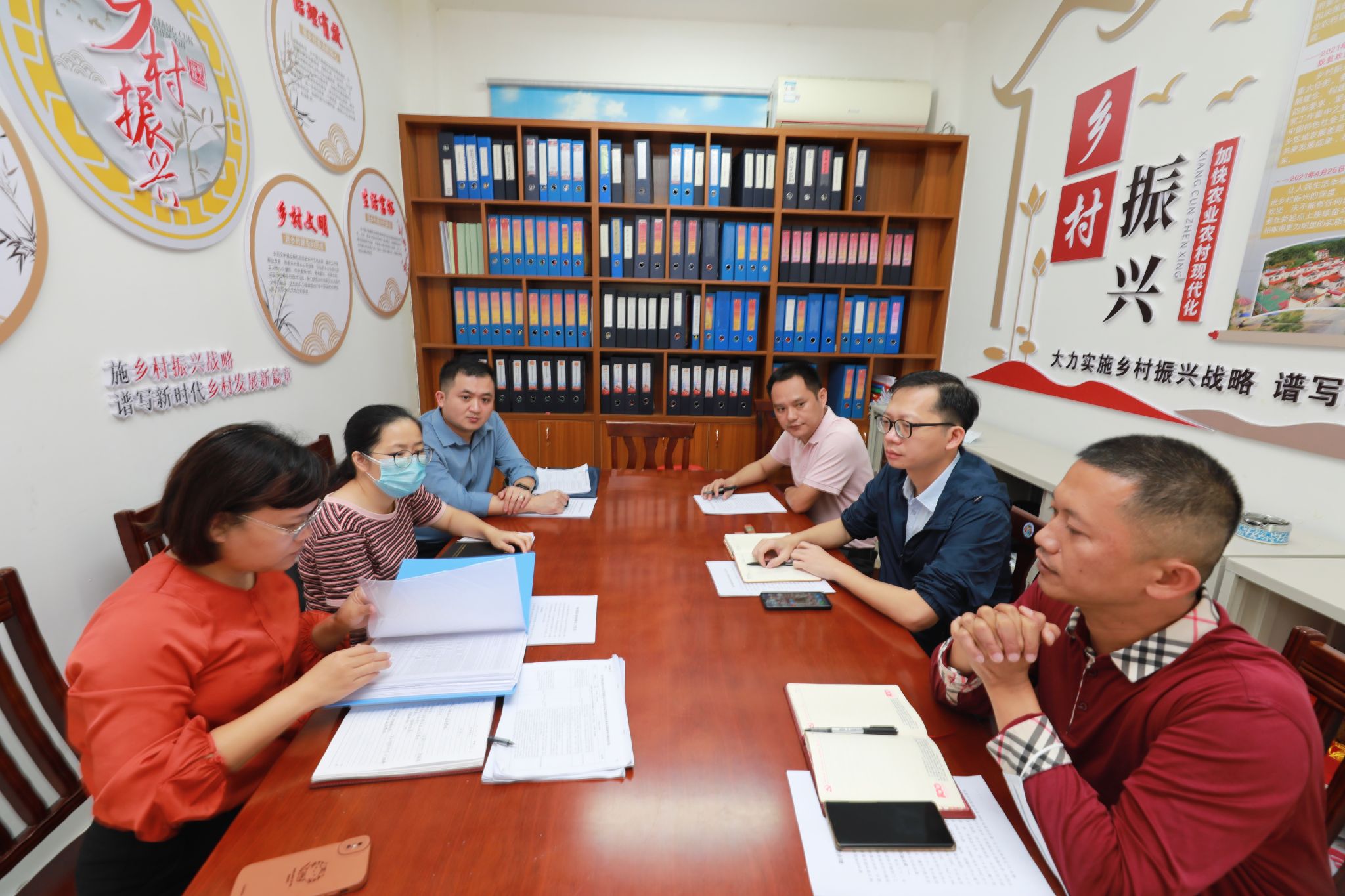 图为黄春燕(左一)在琼中县和平镇堑队村与干部座谈,了解惠民惠农政策落实情况。朱德权 摄