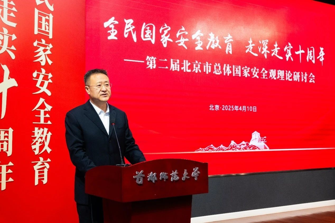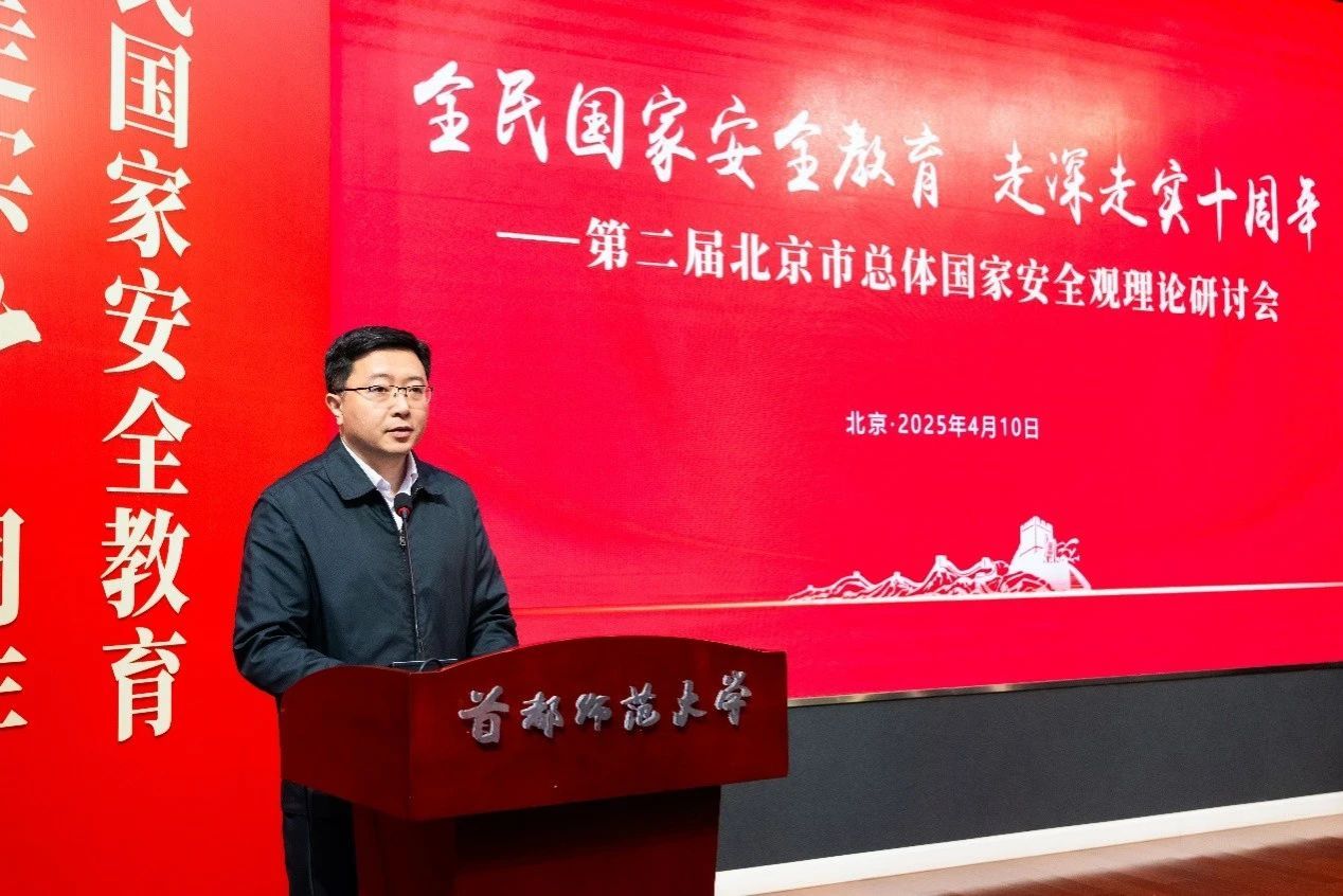 4月10日,为迎接第十个全民国家安全教育日,庆祝北京市总体国家安全观研究中心成立1周年,由北京市委国家安全委员会办公室、首都师范大学和国际关系学院联合主办、北京市总体国家安全观研究中心承办的“全民国家安全教育 走深走实十周年——第二届北京市总体国家安全观理论研讨会”,在首都师范大学隆重举行。北京市委国家安全委员会办公室领导、北京市委教育工作委员会副书记邹凌、首都师范大学党委书记曹文军、国际关系学院院长胡继平等领导同志出席会议并分别致辞。会议还为北京市总体国家安全观研究中心研究员代表颁发了聘书。
