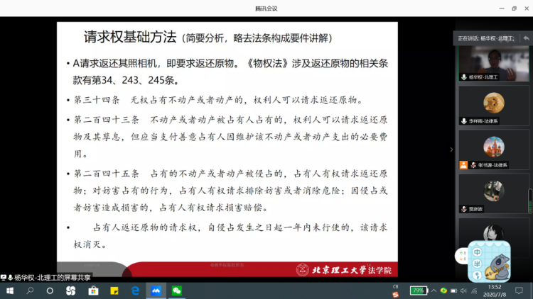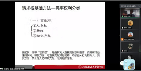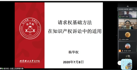 2020年7月8日下午,国际关系学院法律系“2020年夏季学期系列大讲堂之法学讲座”之一“请求权基础方法在知识产权诉讼中的适用”以网络会议的形式于线上成功举办。
