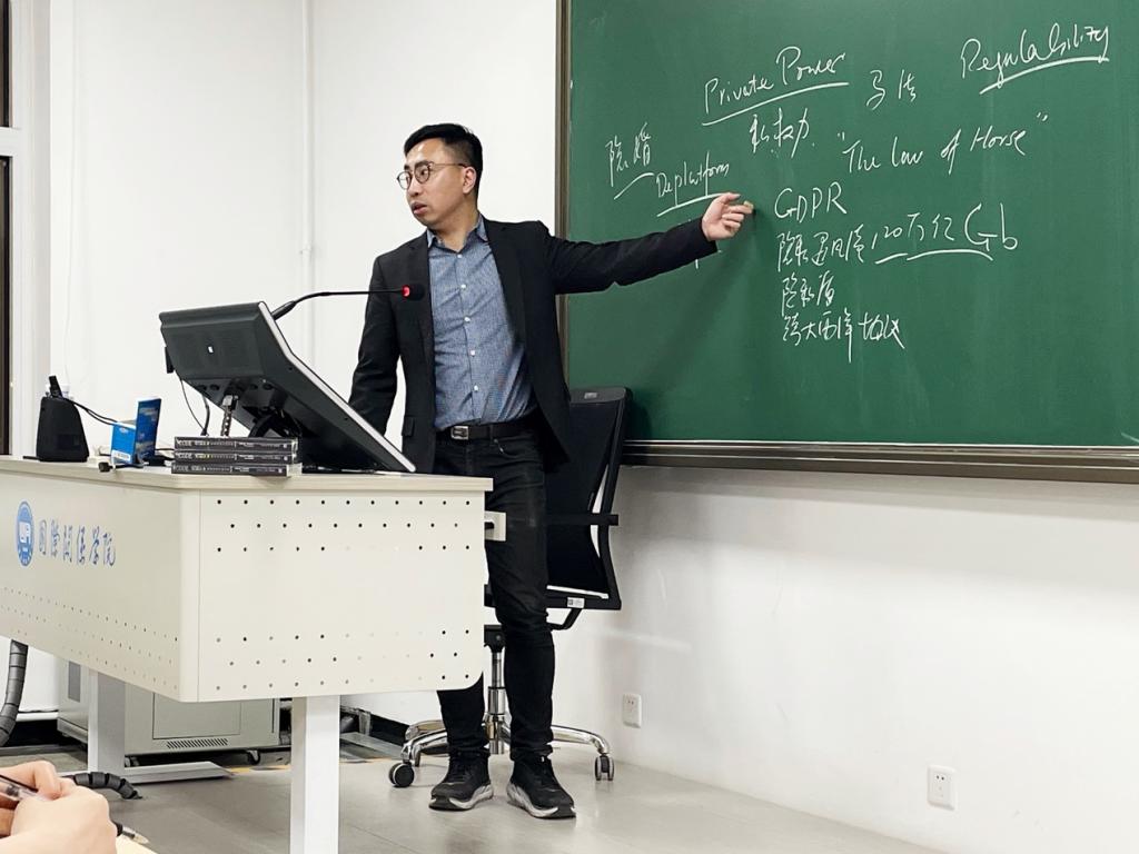 2024年4月2日晚,由国际关系学院法学院策划的“代码、法律与网络主权”讲座在教学楼333教室顺利举行。本次讲座由中国政法大学法学院沈伟伟副教授主讲,国际关系学院法学院李一达老师主持。