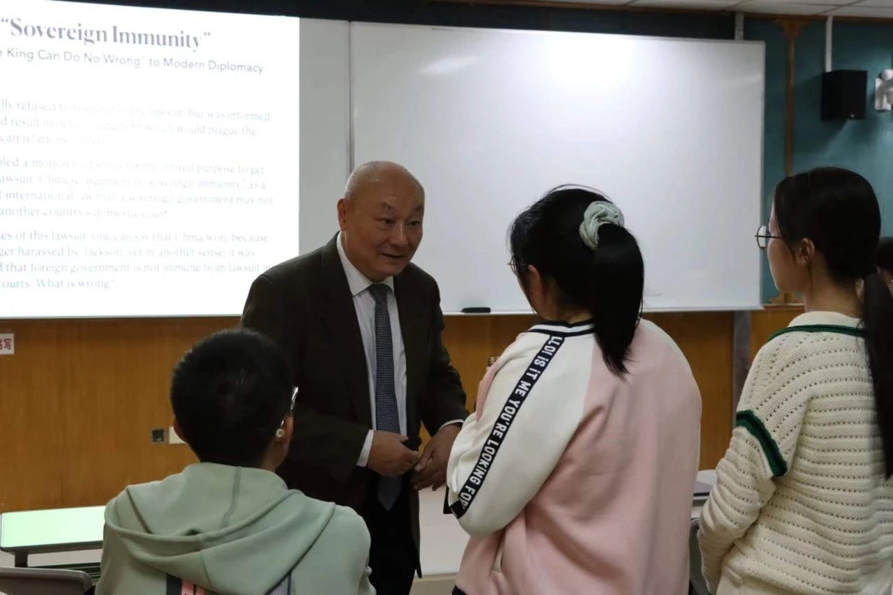 接着,郑教授围绕“sovereign immunity(主权豁免权)”一题展开讨论。为了让我们更好地理解“主权豁免”,郑教授通过引用中国政府在案例判决中“主权豁免是一项重要的国际法原则,中国作为一个主权国家,应当享有司法豁免权”的声明,让我们更加了解了“主权豁免权”一词的更深刻含义。
