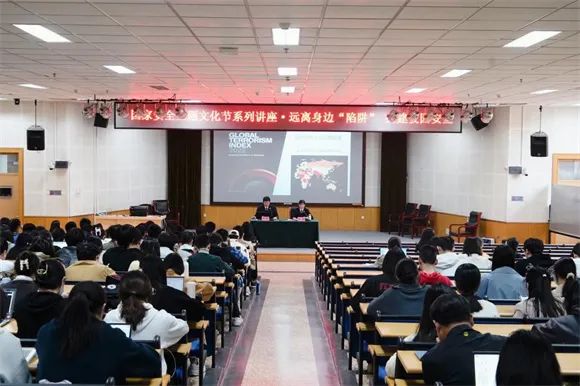 院党委委员、副院长许可主持本次讲座。宣教处处长孙圣英、法学院副院长李秀娜、法学院党总支副书记韩慧慧,以及本科生、研究生代表350人参加讲座。