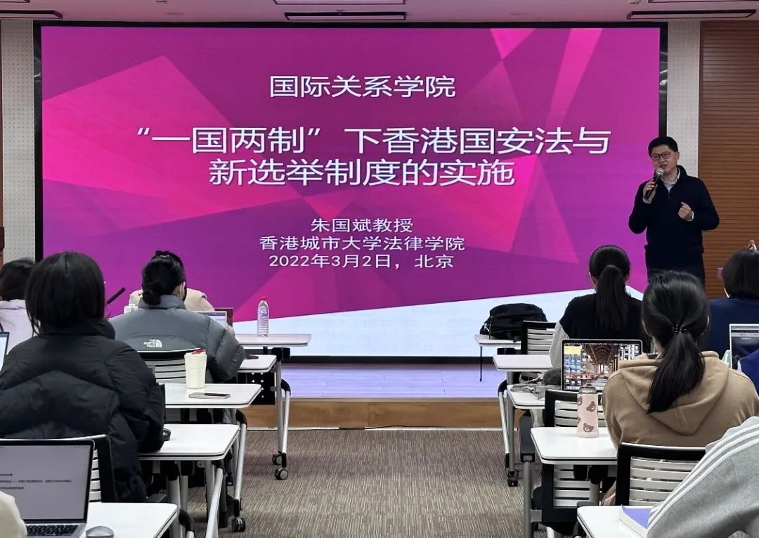 2023年3月2日,“‘一国两制’下香港国安法与新选举制度的实施”专题讲座在国际关系学院学术交流中心第二会议室顺利举行。本次讲座由香港城市大学法律学院的朱国斌教授担任主讲人,国际关系学院副院长毕雁英教授出席讲座并评议。