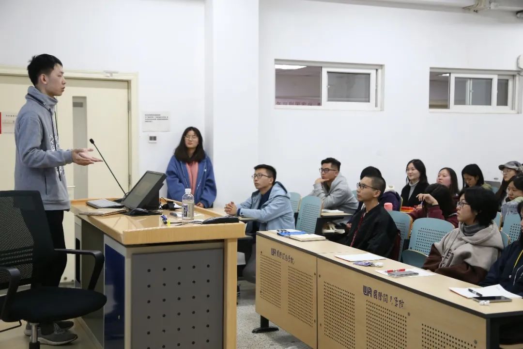 首先开场的是焦雪晴学姐,她向同学们介绍了自己在国关的学习情况,建议同学们选课时以兴趣为主,认真学习,好好听讲,可以和室友结伴学习来培养自律的习惯,还分享了自己的选课技巧。学姐还特别提示到,每位同学各自不同,无论毕业后选择工作还是读研,都要走适合自己的道路,结合现实情况做出清晰规划,并付出行动,特别是注重效率。