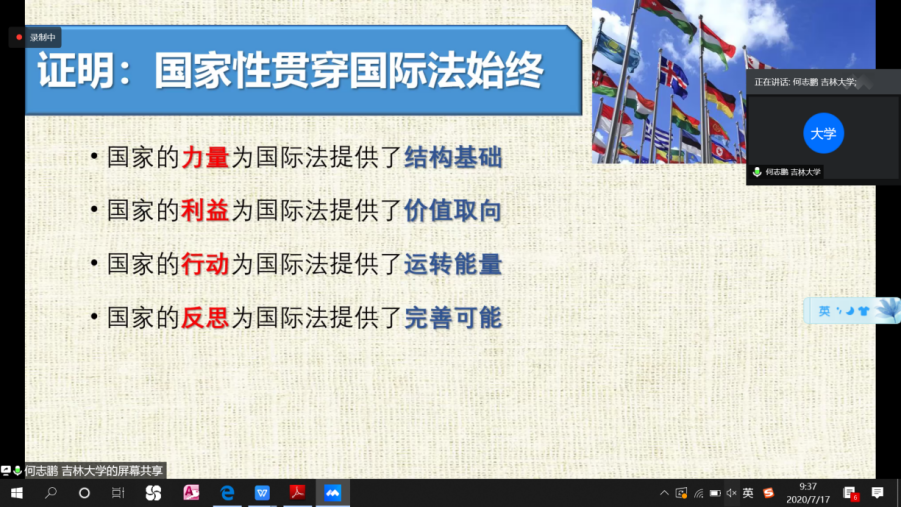 2020年7月17日上午,国际关系学院法律系“2020年夏季学期系列大讲堂之法学讲座”之“国际法的国家起点”以网络会议的形式于线上成功举办。