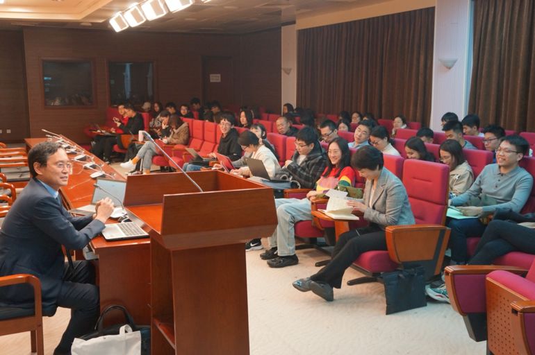 此次讲座主讲人为英国通力律师事务所郑润镐律师,法律系副主任李秀娜老师主持讲座并进行评议。