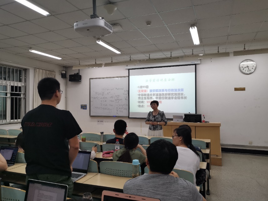 2019年5月22日,中国政法大学法治政府研究院院长、博士生导师、中国行政法学会秘书长王敬波教授应邀来到国际关系学院法律系,为同学们带来了题为“放管服改革与行政法发展”的精彩讲座。