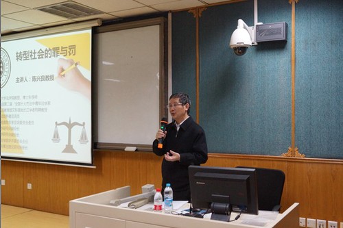 首先,陈教授阐述了在社会转型时期刑法的特殊社会功能与特性,及其针对犯罪形势而应具备的基本政策导向。陈教授深入浅出地讲述了社会转型时期社会具有矛盾多发、犯罪数目增多、贫富差距日益增大等主要特征。