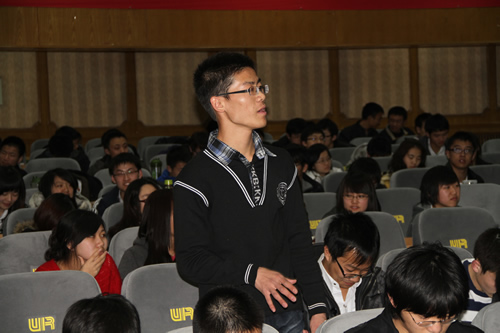 朱教授是国际刑法学界的大家,在这次讲座中也展示出了其大家的风范,他对国际刑法与中国的讲解在完成了对基本知识的阐述之后便开始引导我们思考。不是一味地高谈阔论,他看中的是我们台下同学们的思考。1个小时以后,讲座进入了问答环节。2010级的法律新生卓立雄同学在认真听了朱教授的讲述之后率先站了起来,提出了自己的思考,尽管在大家面前显得不是那么深刻,但是朱教授仍然耐心地解答了问题,同时,也排除了我们刚入门的法律新生们心中的疑惑。场下的气氛顿时活跃起来,同学们纷纷提出了自己的问题,朱教授也一一给予了详细的解答。