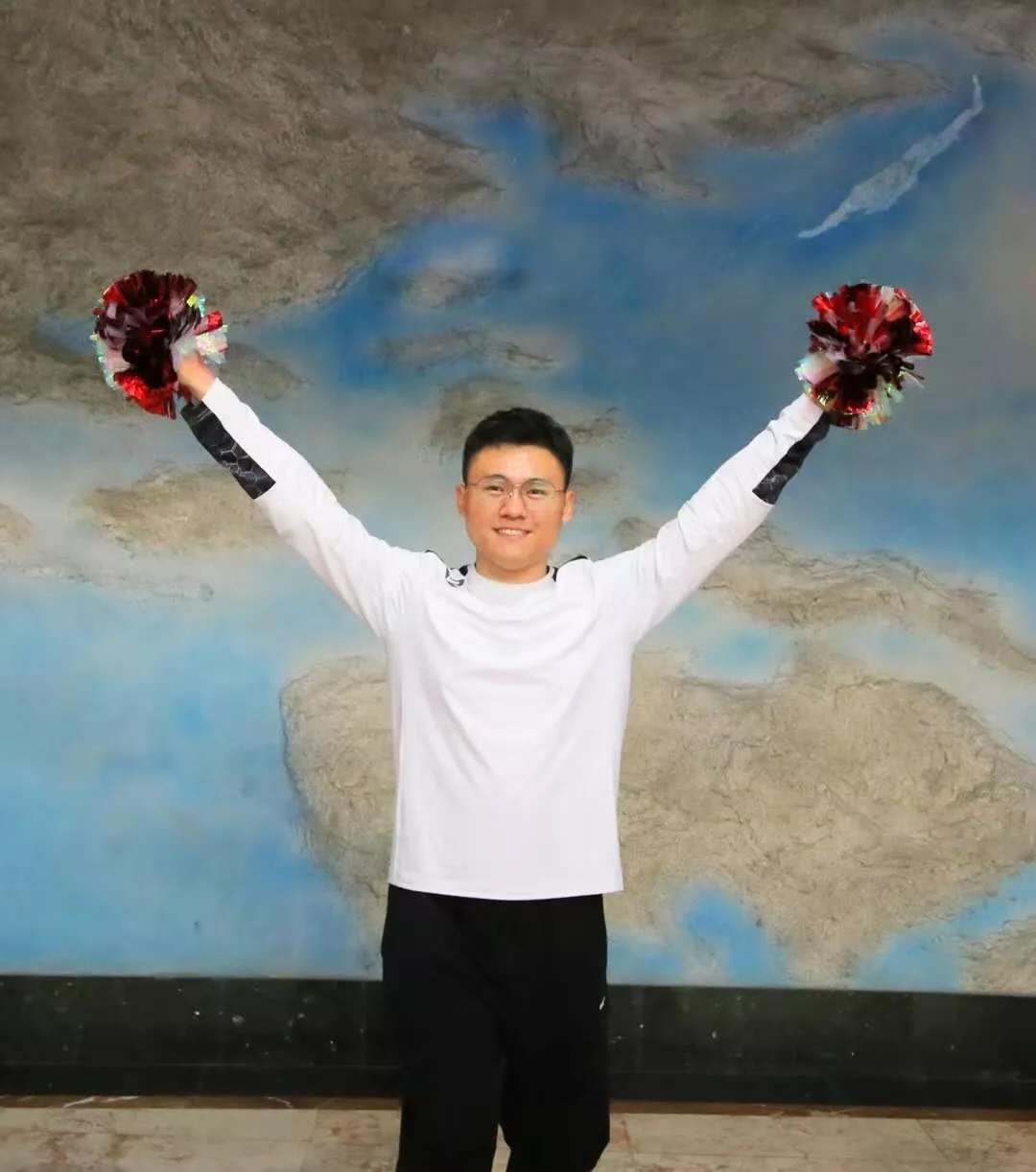 多次被要求“锯腿”(?)的高个男子。真·压腿的时候上不了二杠,踢腿只能九十度,坐位体前屈摸不到地板,但是每一次真的很尽力的去压。法律健美操19级最硬的队员,手位打得不好的同时没有关系,我的下盘也不是很稳,但是每次的训练都很尽心尽力!希望法律系的健美操队今年能取得好成绩!