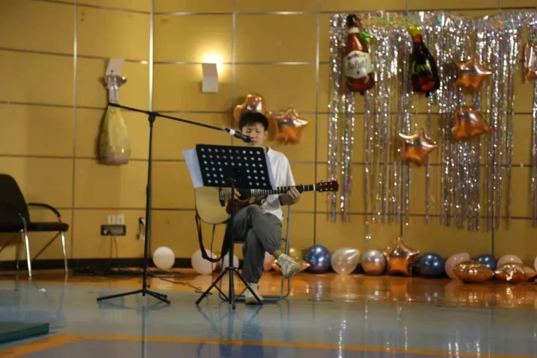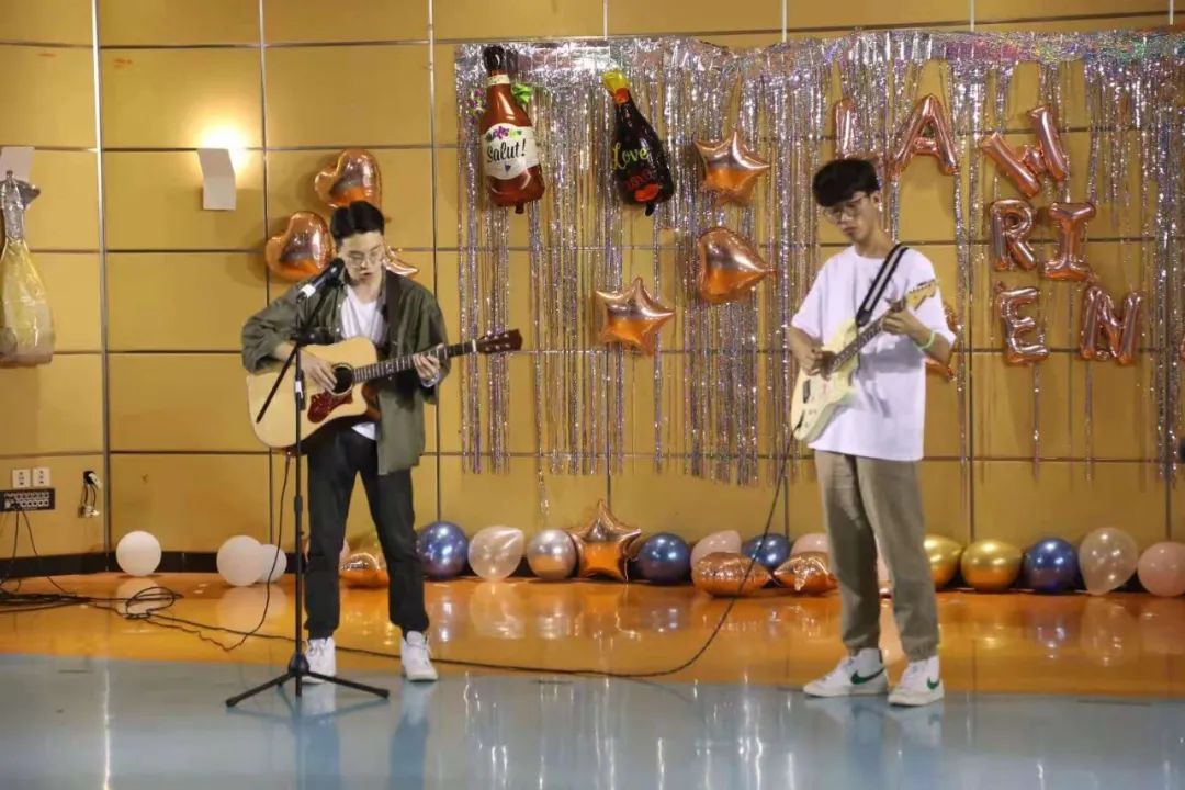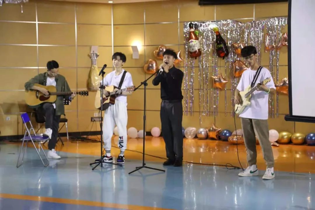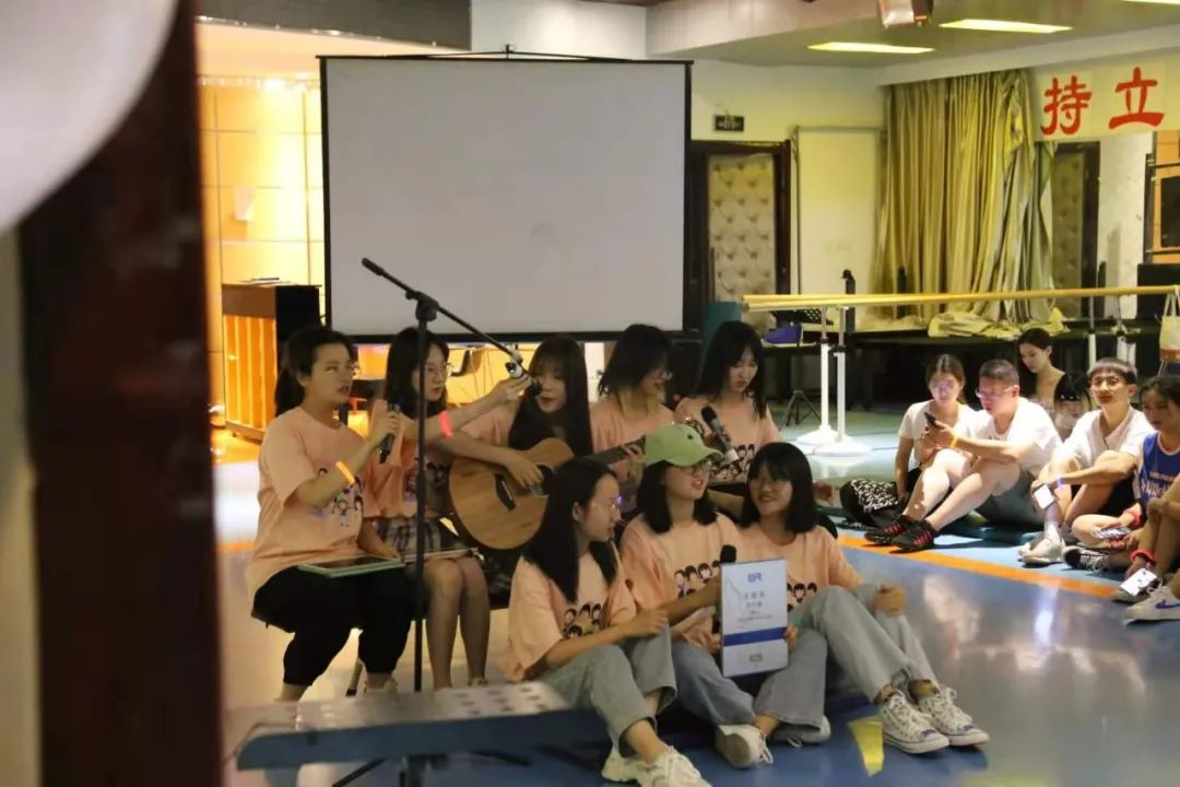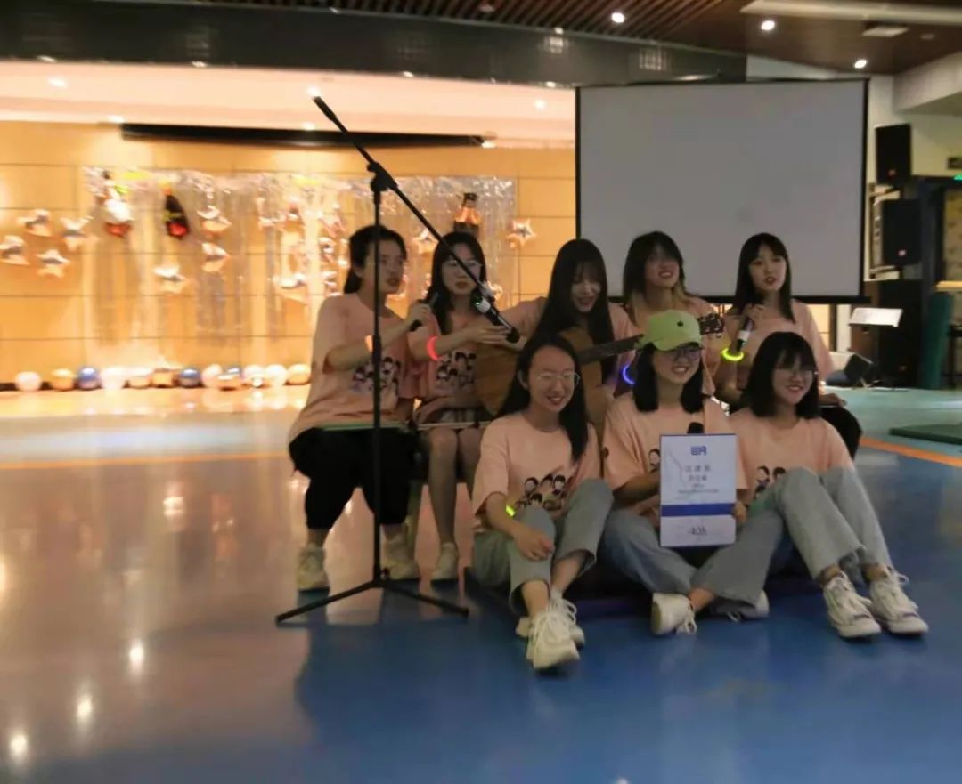 接下来是405办公室组合献唱的《七里香》。405办公室成员是润远402、403宿舍全体成员。在吉他声中,她们唱出了一年来的深厚友谊,唱出初夏清新惬意的感觉,更唱出了少年心怀。唱至结尾,她们齐齐举牌“毕业快乐”,为大四学长学姐送上祝福。