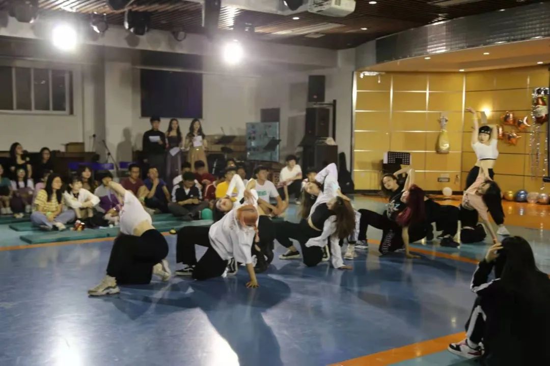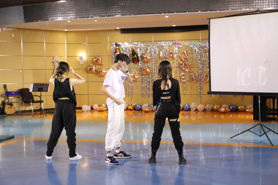 接下来是邓宁、董林叶、刘碧洁、李璟雪带来的舞蹈《pretty love》,她们配合默契,力量感凝聚在每一次扭动、拍手、动作交错之中。曲调慢时她们动作柔婉,曲调快时她们动作又酷又飒,变换自如、舞曲一体。
