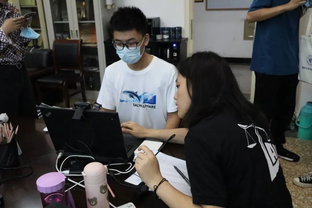 上午9时,报道人数达到了高峰。校门前,“法学院”的牌子高高举起,满眼望去,都是家长鼓励的话语和新生期待的目光。校园里,身穿黑色系服的志愿者们帮助新生搬行李,指引他们前往宿舍楼,热心地帮助消解了新生们的紧张情绪。教学楼上,新生排队签到,进行“人脸识别”,一切工作都是紧张有序、井井有条。