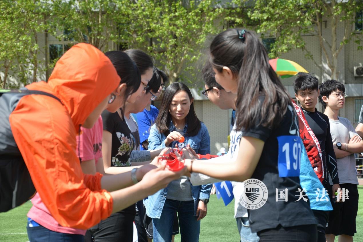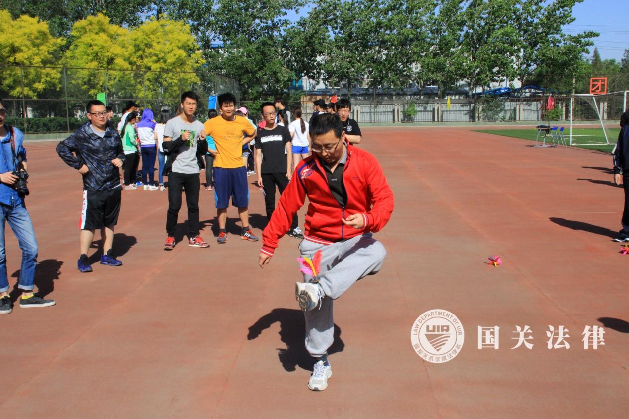 集体趣味项目由法律系主任李汉军老师、副主任韩慧慧老师、叶景山老师与赵思斯老师带领同学们共同参加。传球接龙、毽子纷飞、跳大绳、击鼓颠球各个趣味项目考验了老师与同学之间的紧密配合与团队协作, 相较于竞赛的紧张更增添了诸多乐趣,在师生的欢乐互动中为本次运动会划上了圆满句号。