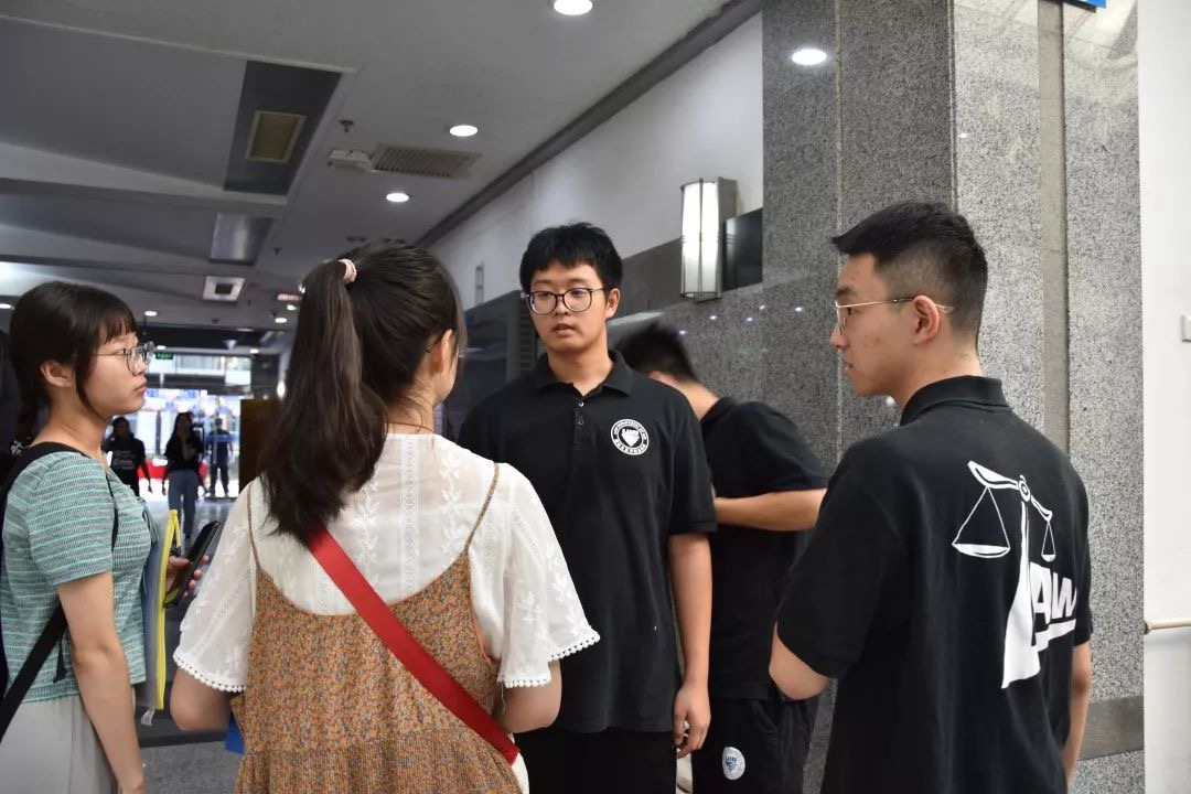 上午8时,迎新的大厅便已经忙碌了起来,原定于九点开始的新生报到注册时间显然没能挡住新生们的热情,法律系的同学们也积极地投入到紧张忙碌的迎新工作中。