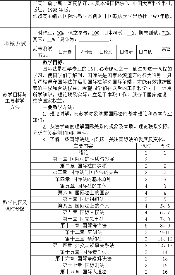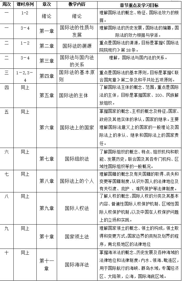 《国际法学》教学大纲
