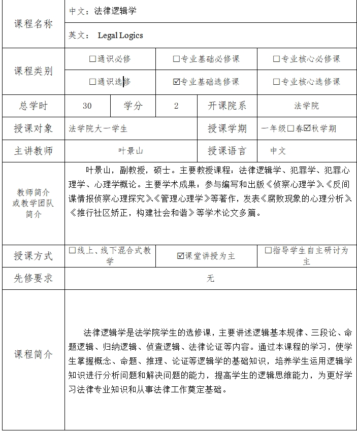 课程名称:法律逻辑学