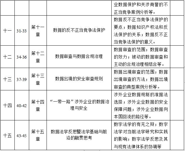 数据治理专题是法学基础理论与实务前沿高度结合的领域。通过本课程的学习,学生既能了解和掌握该领域的相关规则和研究方法,提升知识增量;亦能提升对法学学科体系融贯的思考和认识,提高分析和解决专业问题的能力。