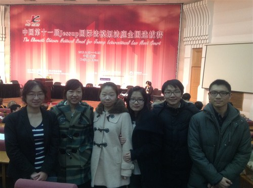 本次代表国际关系学院参赛的同学包括法律系2010级学生常玲毓、董一楠、赵春皓、许瀚、谢丰泽五名同学,由谢菁菁老师担任指导教师。从2012年9月开始,在谢菁菁老师的指导下,经过半年的深入研究、讨论,于2013年1月完成诉状的撰写。2013年2月25至2月28日,我校代表队在经过激烈的竞争之后,获得二等奖。
