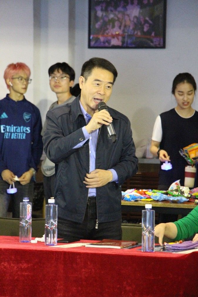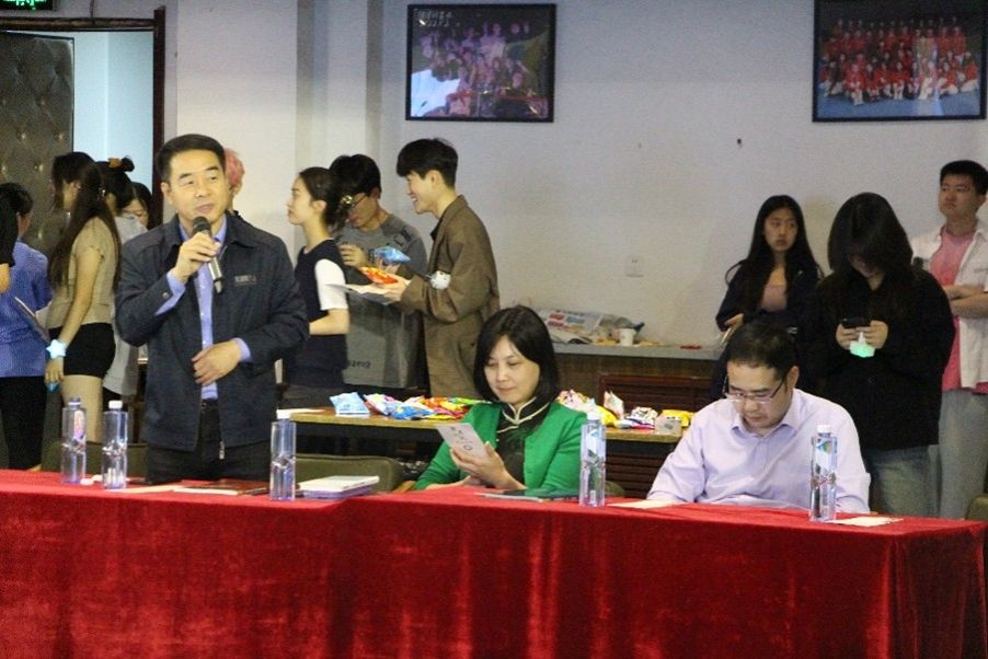 邓老师为本次晚会致辞,邓老师首先肯定了法学院学生会各位同学以及演出人员为此次送老晚会做出的付出与努力,接着,向在场的同学们说明了2025届毕业生在就业方面的突出成绩,同时在文体活动、学术竞赛中全面开花,是师弟师妹们学习的优秀榜样。最后,邓老师代表法学院全体老师与同学为毕业生送去了最真挚的祝福,祝愿他们在未来的人生征途上继续拼搏,实现更长久、更圆满的精彩!