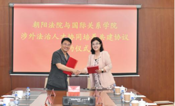 朝阳区人民法院党组副书记、副院长王国才,朝阳区法院副院长李丹,朝阳区法院奥运村法庭副庭长梁远、副庭长张琦、法官秦雅维、法官助理刘晏菲和国际关系学院法学院院长郝敏,法学院教师李一达,法学院辅导员、学生党支部书记赵思斯以及法学院学生代表等参加签约仪式。