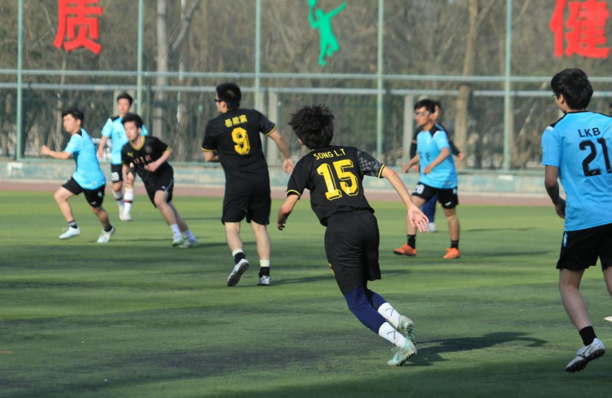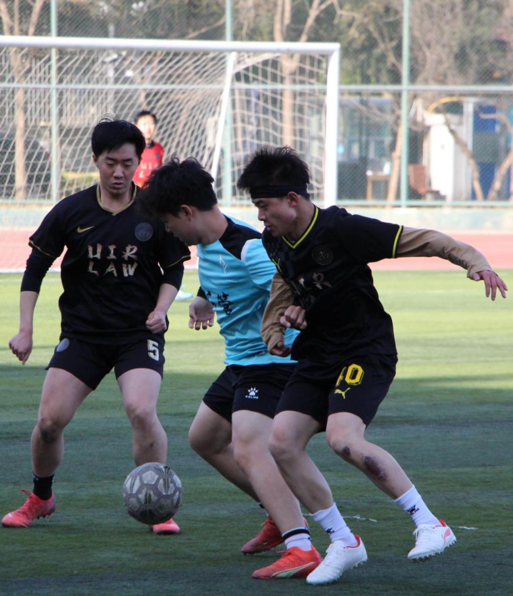 随后的比赛中,法律队的孙奕德和宋乐天在右边路打出精妙配合,宋乐天的直塞球找到了沈梓盟,后者插上进攻,禁区内发生混战。右边后卫汪靖博插上后点补射,虽然对方后卫在门线上将球解围,但法律队的汪靖博险些得分,表现十分可惜。