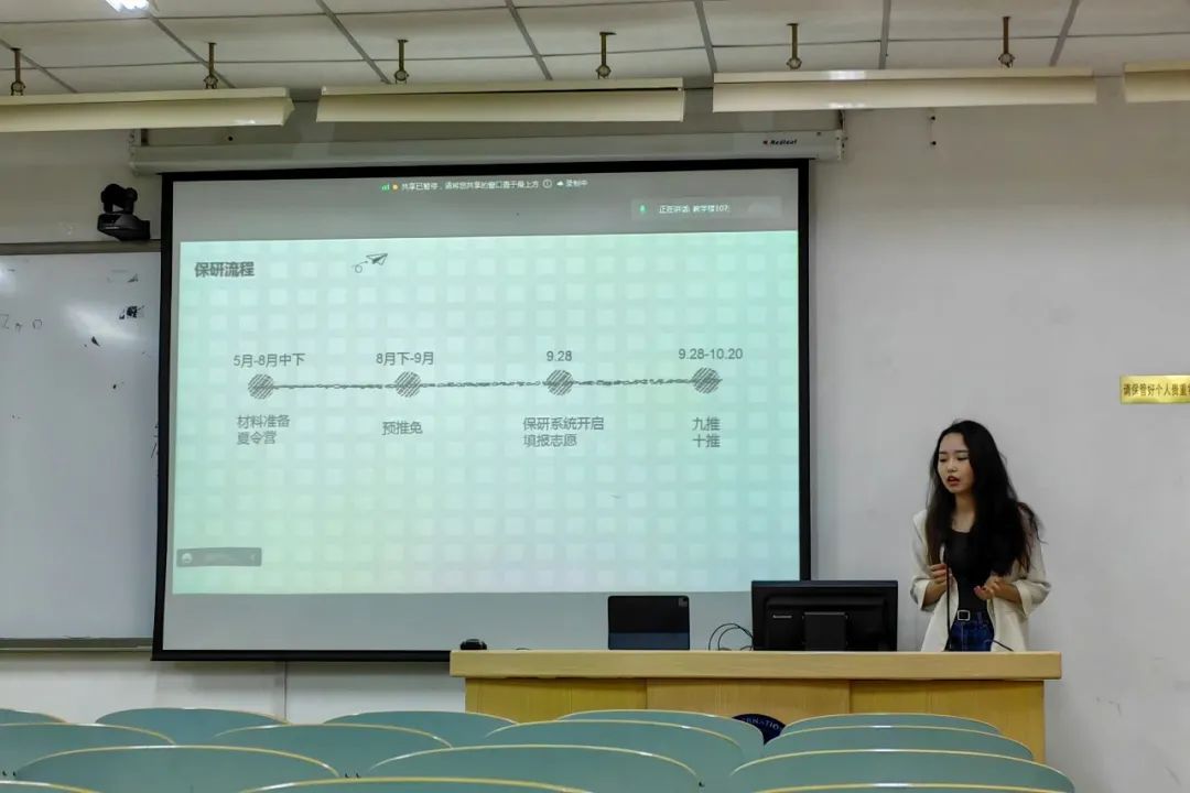 保研至北京大学的高姝涵学姐和大家分享了关于出国与保研同时准备的时间线以及如何准备语言考试两方面的内容,并建议大家考虑好自己喜欢的方向,多加尝试,同时要保持良好的心态应对未来的挑战。