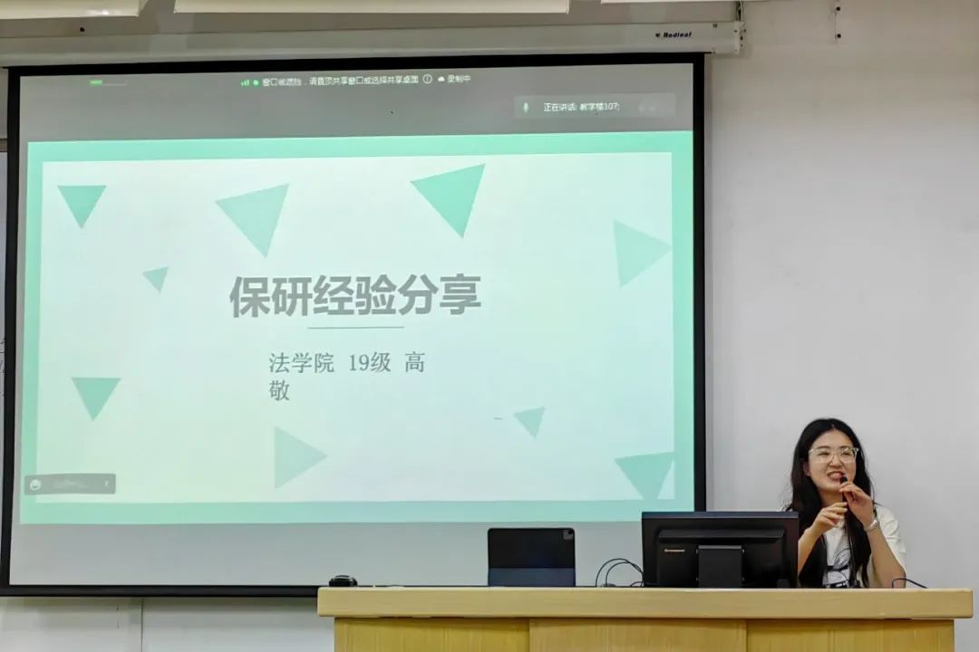高敬学姐现保研到中央财经大学法律(法学)专业,她主要和大家分享了关于保研择校、信息获取、准备方法三方面的问题。她鼓励同学们坚定信心,通过努力一定可以达成自己的目标。