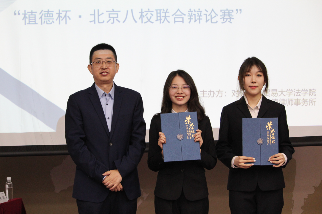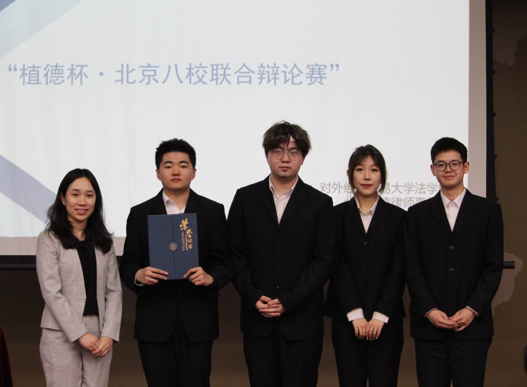 2023年4月20日至27日,法学院辩论队应邀参加由对外经济贸易大学主办的“植德杯·北京八校联合辩论赛”,本次赛事面向北京大学、北京邮电大学、中央财经大学、中国政法大学、北京交通大学、国际关系学院、北京外国语大学、对外经济贸易大学八所高校法学院辩论队。法学院辩论队分别在初赛、复赛、决赛与北京交通大学、北京大学和中国政法大学的法学院辩论队进行切磋。赛场上辩论氛围紧张热烈,观点交锋犀利精彩,法辩队员们凭借专业的知识和充足的准备取得了八校辩论赛亚军的优秀战绩。同时,李欣洁同学在决赛中获得“最佳辩手”的称号。