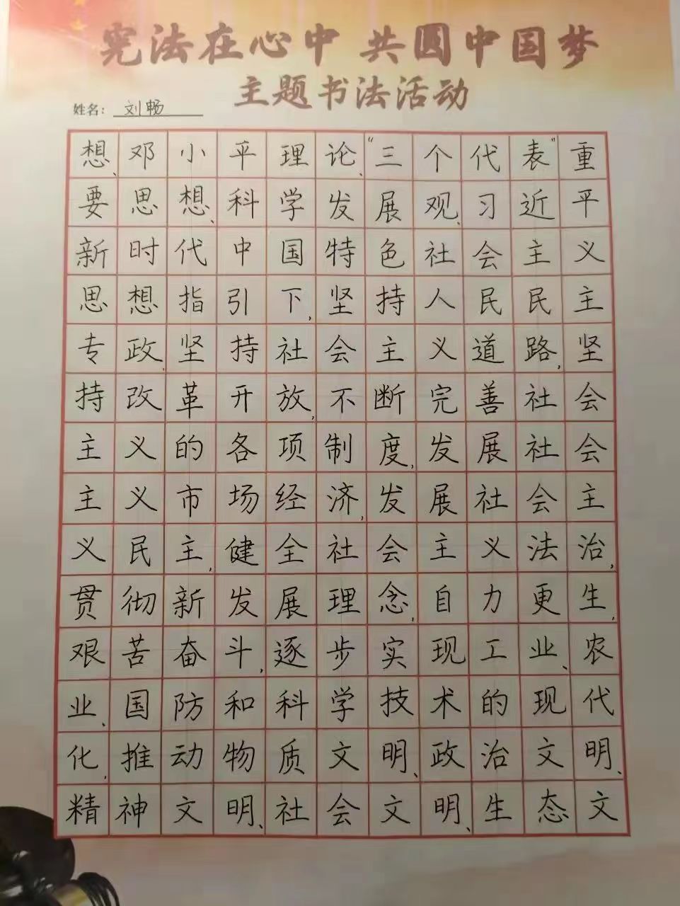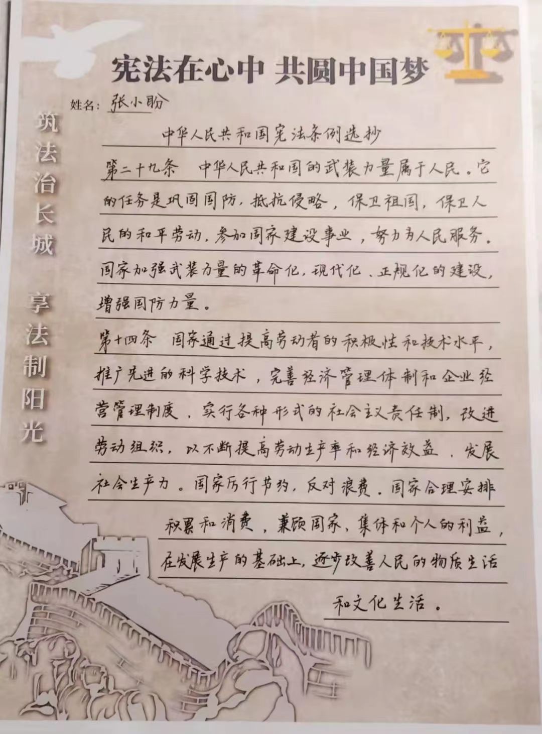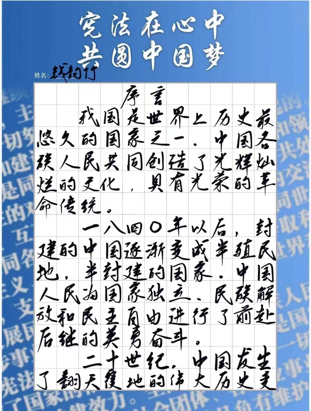 听说有书画活动,我和其他许多书法爱好者都非常激动,一方面是觉得自己的爱好有了展示的平台,一方面又因为我们可以用我们自己的爱好向我国的根本大法致敬,这让我觉得自己的爱好有了不一样的意义。——钱韵竹