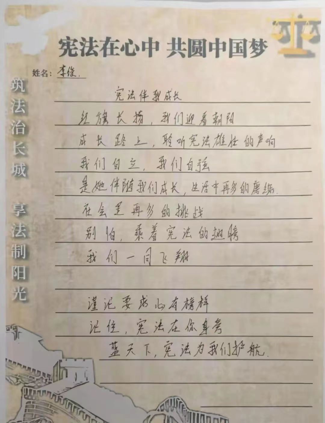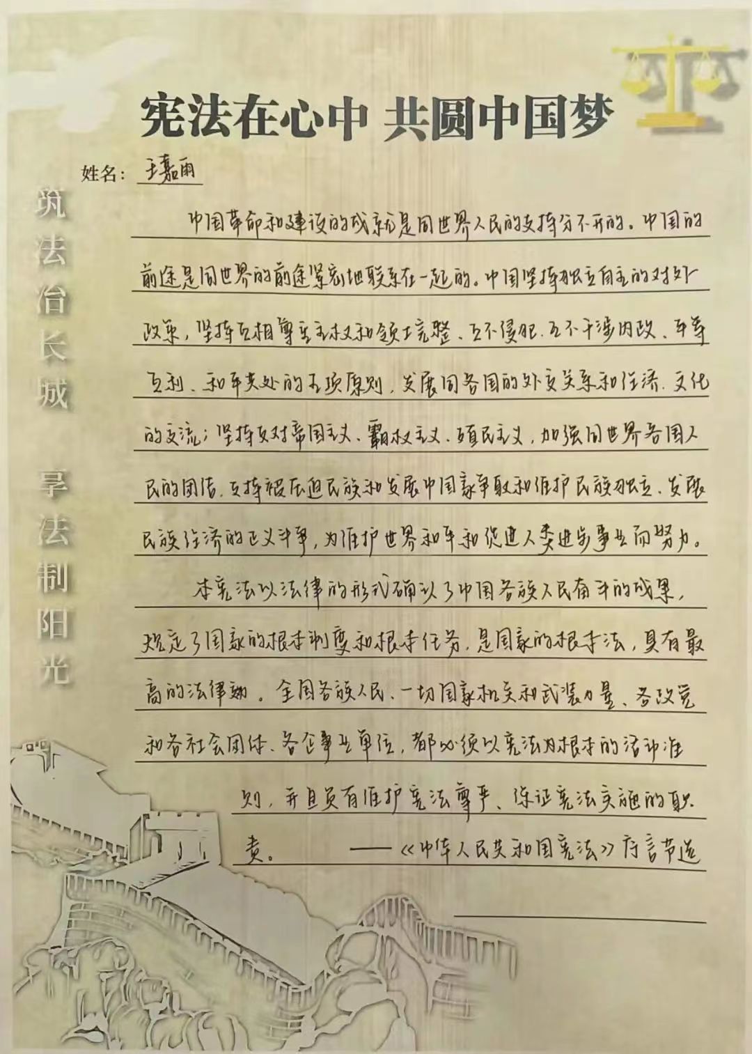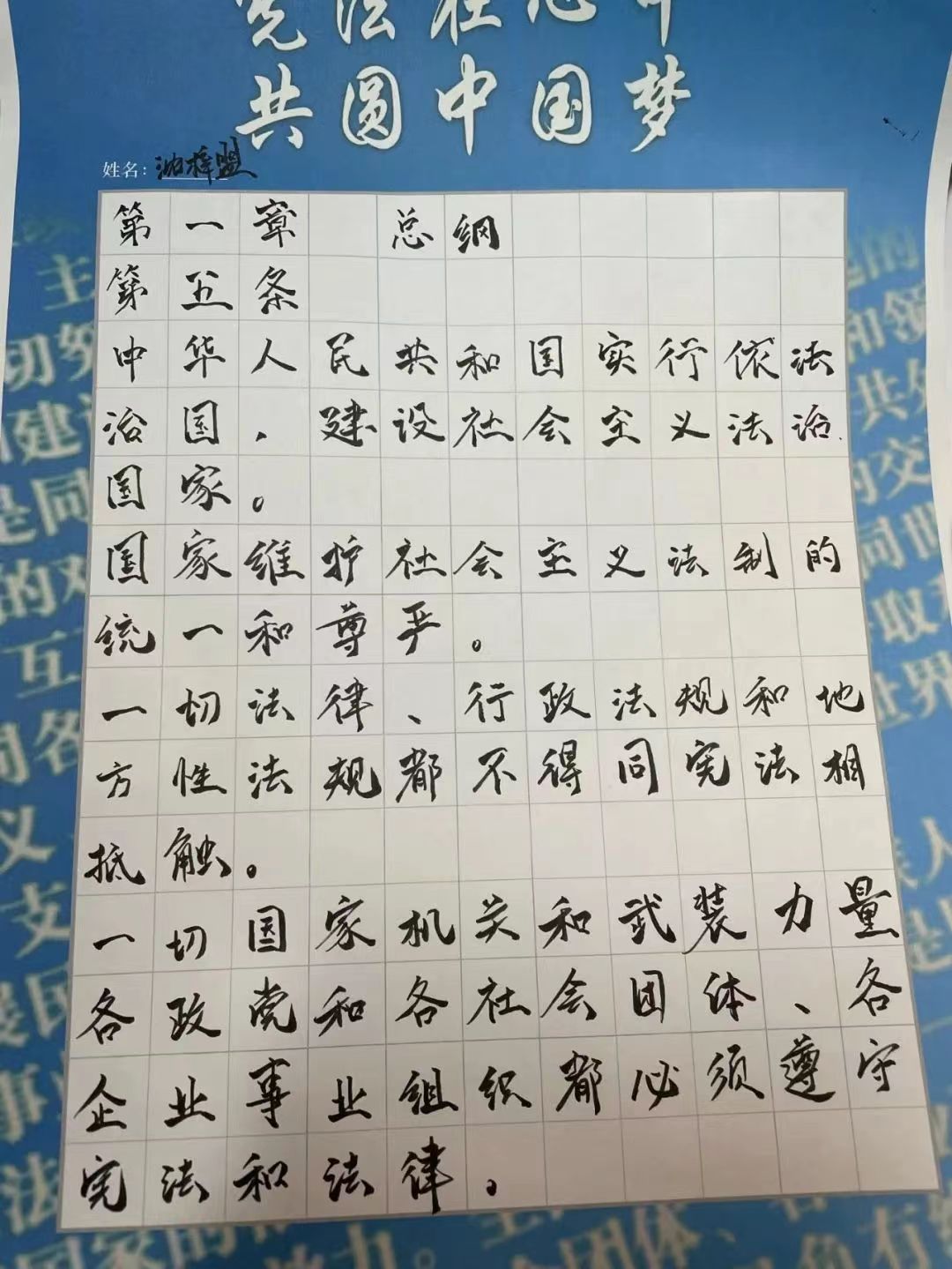新时代呼唤法治新公民,我们希望通过此次书画展拉近我们与宪法之间的距离,用一种喜闻乐见的活动形式让同学们在参与中深化对民主法治的理解,在校园内传播法治精神。学法知法守法用法,让法治成为我们的社会共识和生活的基本准则。