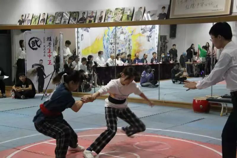 第一位上场的是李湃,开场时他便抢占先机,把对方拉入我方界面。其后又反复换脚以转换对手重心,把对方推出边界,为我们展示了何为推手界“反复横跳”之王,以7:2绝对优势取胜。