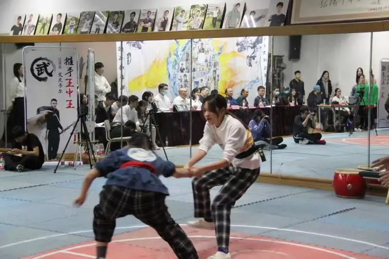 第一位上场的是刘子睿。开场他便以迅猛之势将对方拉入我方界,其后又攻守结合,在坚守阵地的同时紧抓对方肩部将其推出。进行至中场,更是把对方推倒来扩大比分优势,最后以11:0制胜对方。“新疆的牛羊肉不是白吃的!”现场观众的话语中表达了对这位推手新秀的充分肯定。