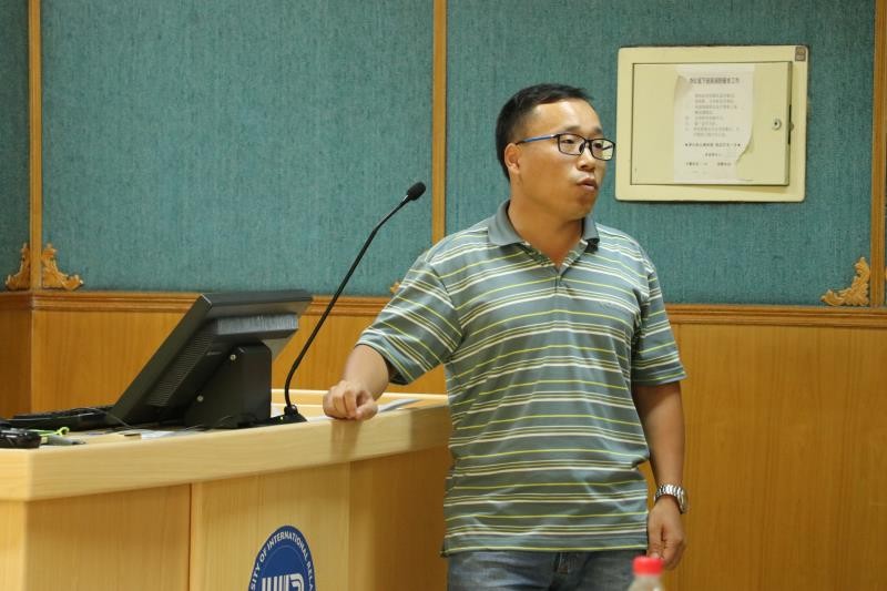 随后,郭世杰老师与李文杰老师作为18级学生两个班级的班主任在会上与18级新生见面。两位老师首先向新生表示了欢迎并做了简单的自我介绍,随后郭世杰老师用幽默风趣的语言告诫学生们“上了大学不是解放”、“努力学习不要沉迷游戏与聊天”等等,而李文杰老师主要从四年的学业规划以及学习方法方面做了简单的陈述。