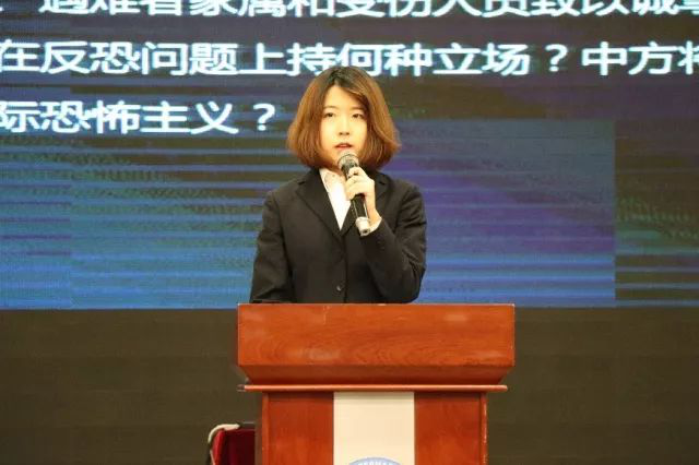比赛继续推进,在考验选手专业素质和临场应变能力的模拟新闻发言人环节,王浥晨同学表现抢眼。在回答记者提出的问题时,她从容不迫,干净利落,态度明确,颇具外交部新闻发言人的风范。凭借着自身强大的气场和出色的表现,王浥晨同学获得了台下的热烈掌声。关键词环节,彭程同学代表我系上场。顺利猜出图片内容后,他侃侃而谈最终答出六个关键词,获得了一个不俗的成绩。
