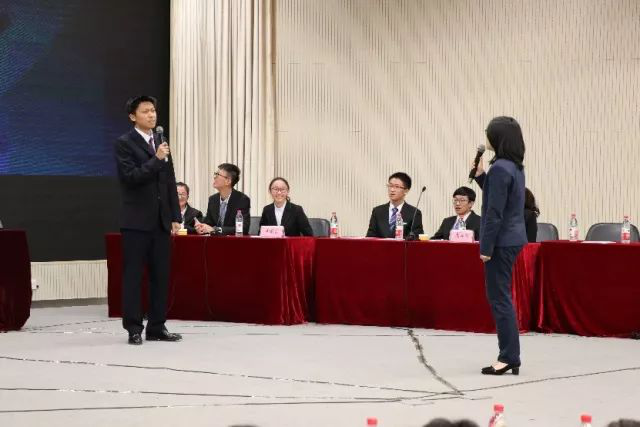 在紧张刺激的抢答题环节中,难度较大的题目一度令场上的选手们无法按下抢答器。在外交学院领先三题的压力之下,法律系再次获得答题权,彭程同学几番纠结之后给出正确答案扭转颓势,为我系在此环节拿下一城。几轮比赛结束后,我系总分排名第二,依然处于领先位置。