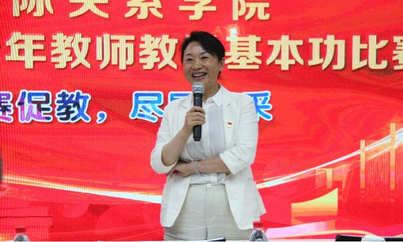 毕雁英副院长对现场演示环节选手的表现进行点评,充分肯定了选手们的表现,希望更多的青年教师能够利用青教赛这个平台,汲取各专家评委的中肯建议,更好地提高教学水平,肩负起重任。比赛过程中的评委意见以及相关材料也将由教务部门进行整理、反馈,作为指导青年教师的教学示例和参考。