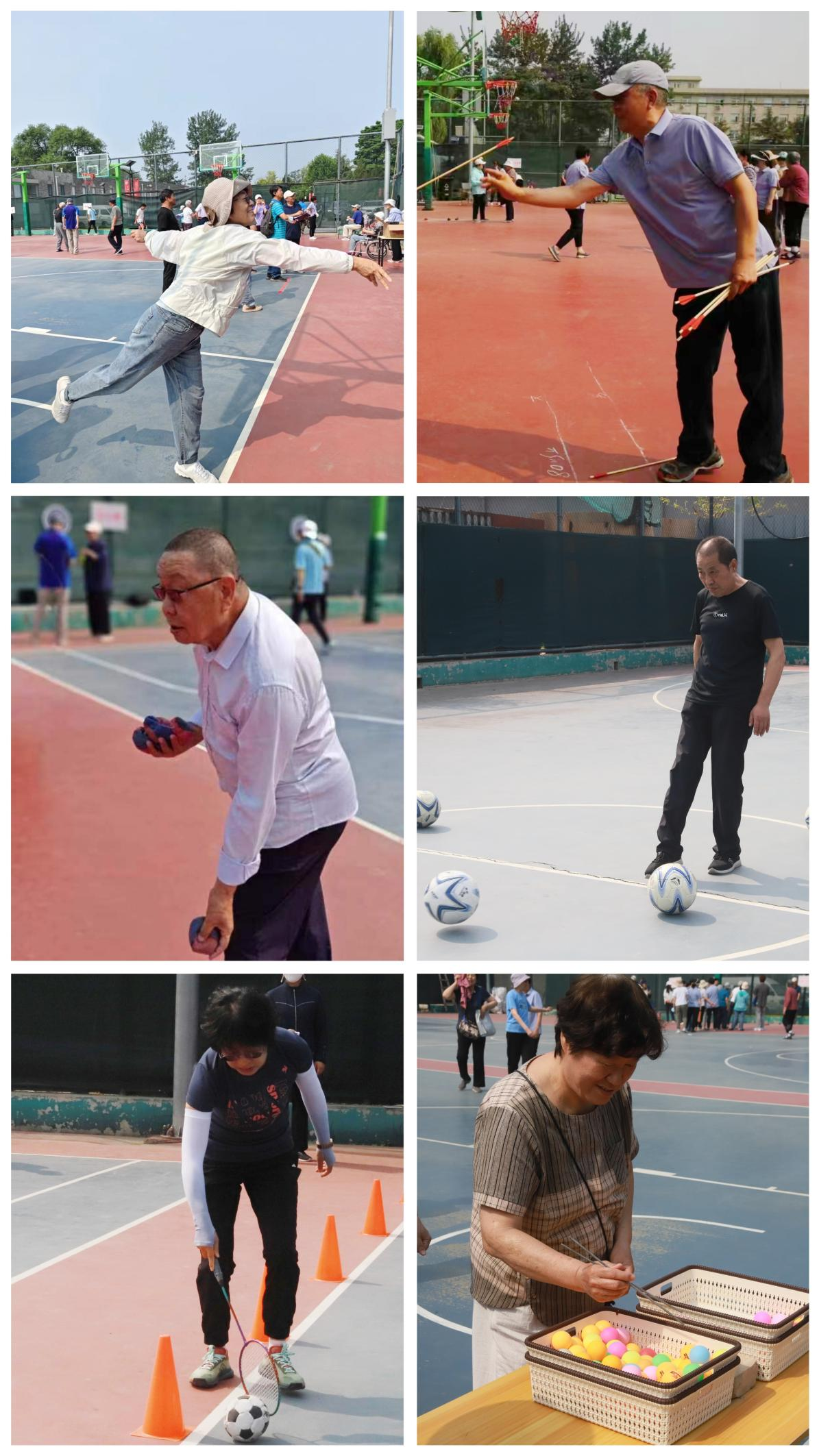 老年大学课程展示结束后,运动会单项比赛正式开始。此次运动会设置了投壶、投沙包、投飞镖、夹兵乓球、足球射门、赶小猪6项个人项目,集趣味性、娱乐性和竞技性于一体。老同志们精神矍铄,身手矫捷,纷纷使出看家本领,场上不时传来欢笑声、喝彩声,气氛热烈而欢快。
