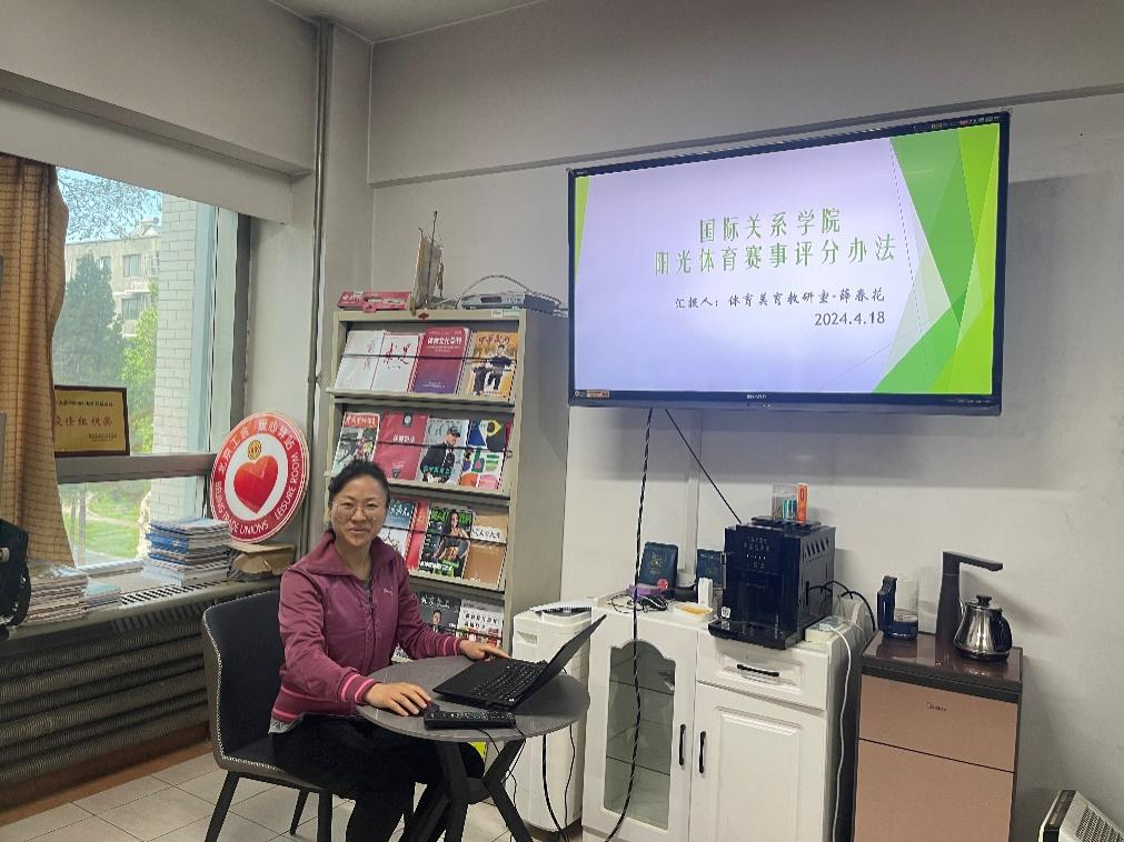 薛春花汇报了“阳光体育”赛事评分方法,并介绍了体育美育教研室近期工作成果。