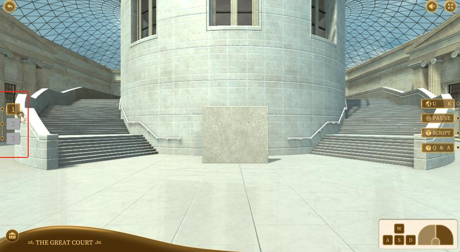 “西方文明进程——文明与文物”虚拟仿真实验包括两个版本,即:2019年秋季学期推出的部署在虚拟仿真实验室的第一期头盔版虚拟仿真实验,以及2020年秋季学期在智慧树平台上线的第二期网络版虚拟仿真实验。无论是头盔版还是网络版,都具有开放、扩展、兼容、前瞻的虚拟仿真实验教学运行平台。实验提供引导实验与自由探索两种交互式实验模式,前者突出文明发展顺序及传承脉络,后者提供个性化探索机会。全英文界面,有词库检索功能,可自由切换英音或美音,自主选择语音或文字提示,自动生成评价报告,形成完整的教学闭环。