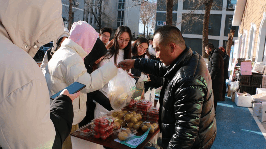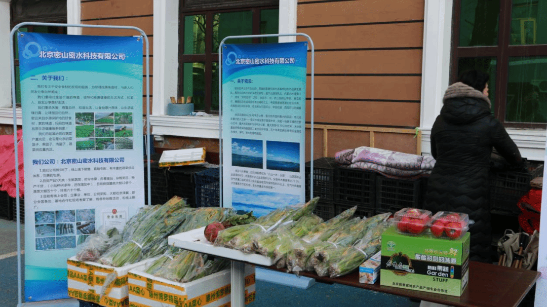 活动设置了多个展示摊位,这些绿色健康的农产品一经亮相,便受到了学院师生和社区居民们的热烈欢迎和一致好评。农户不仅对优质的农副产品进行宣传和展卖,还设置了农副产品品鉴环节,专门介绍农副产品的生产过程并分享其独特的特点与优势。酸甜可口的葡萄醋让学生老师们赞不绝口,“清晨采摘,上午售卖”的有机蔬菜更是受到大量教职工的青睐。这些农产品不仅为师生提供了高品质的生活消费选择,更近距离展示了密云绿色生态的品牌形象。