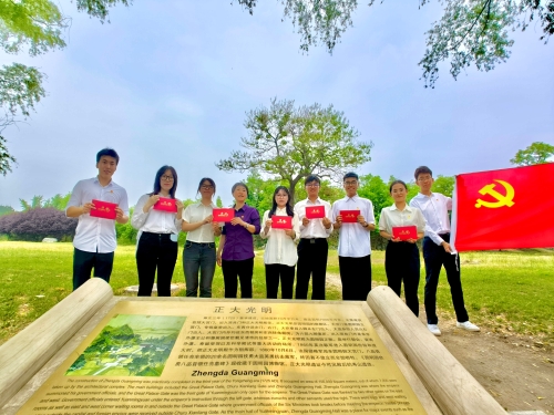 瞻仰结束后,全体党员在圆明园内举行了重温入党誓词仪式。在党旗的见证下,党员们庄严宣誓,重温了入党时的庄严承诺。宣誓仪式上,党员们表达了对党的忠诚,对人民的服务承诺,以及为实现共产主义事业奋斗终身的决心。