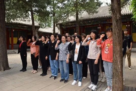 下午13时,经济金融学院党总支到达颐和园益寿堂,该园主题为“古都春晓——寻访中国共产党进京赶考之路主题展览”,在此,经济金融学院党总支组织委员刘倩老师主持并带领全体党员面向党旗庄严宣誓。