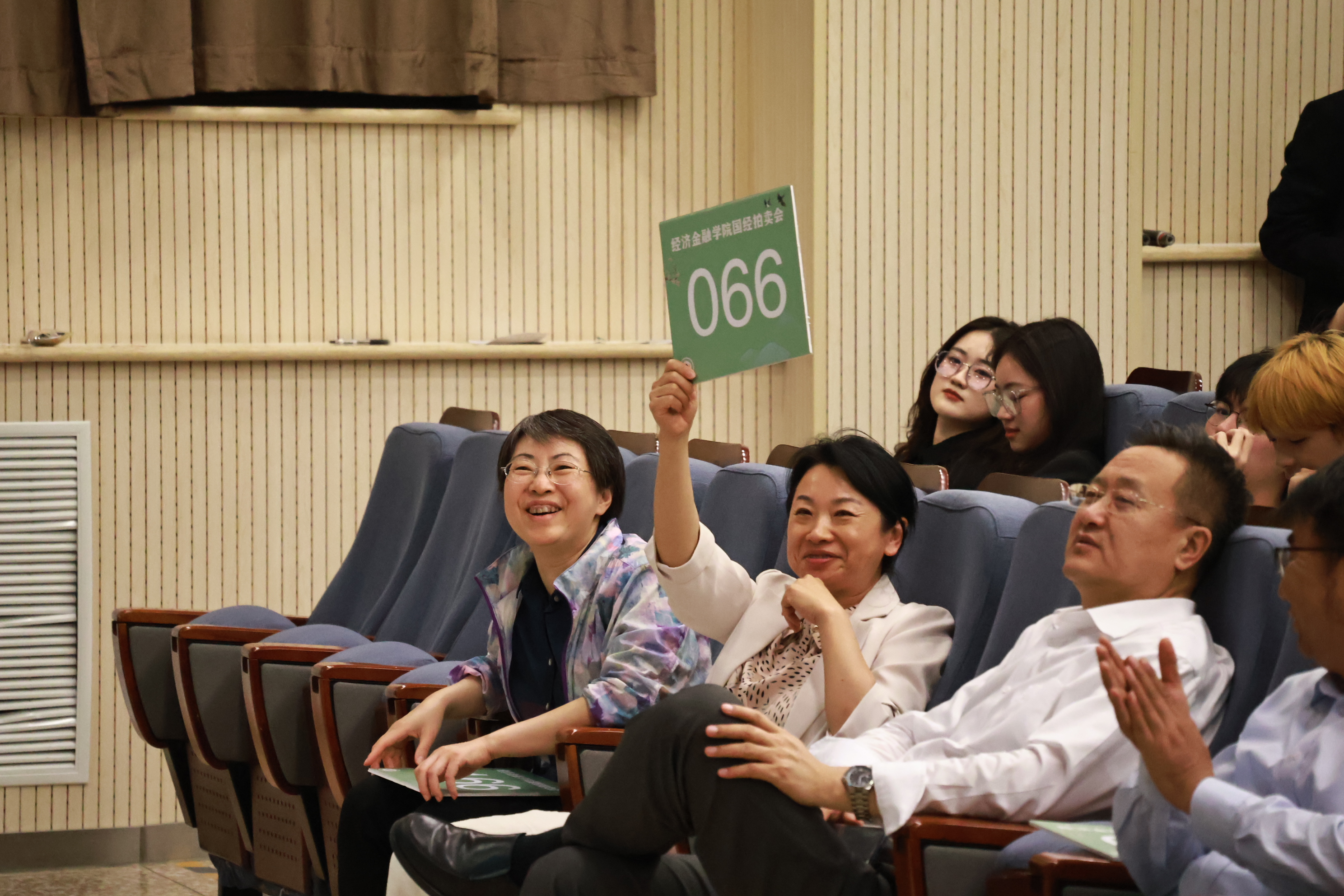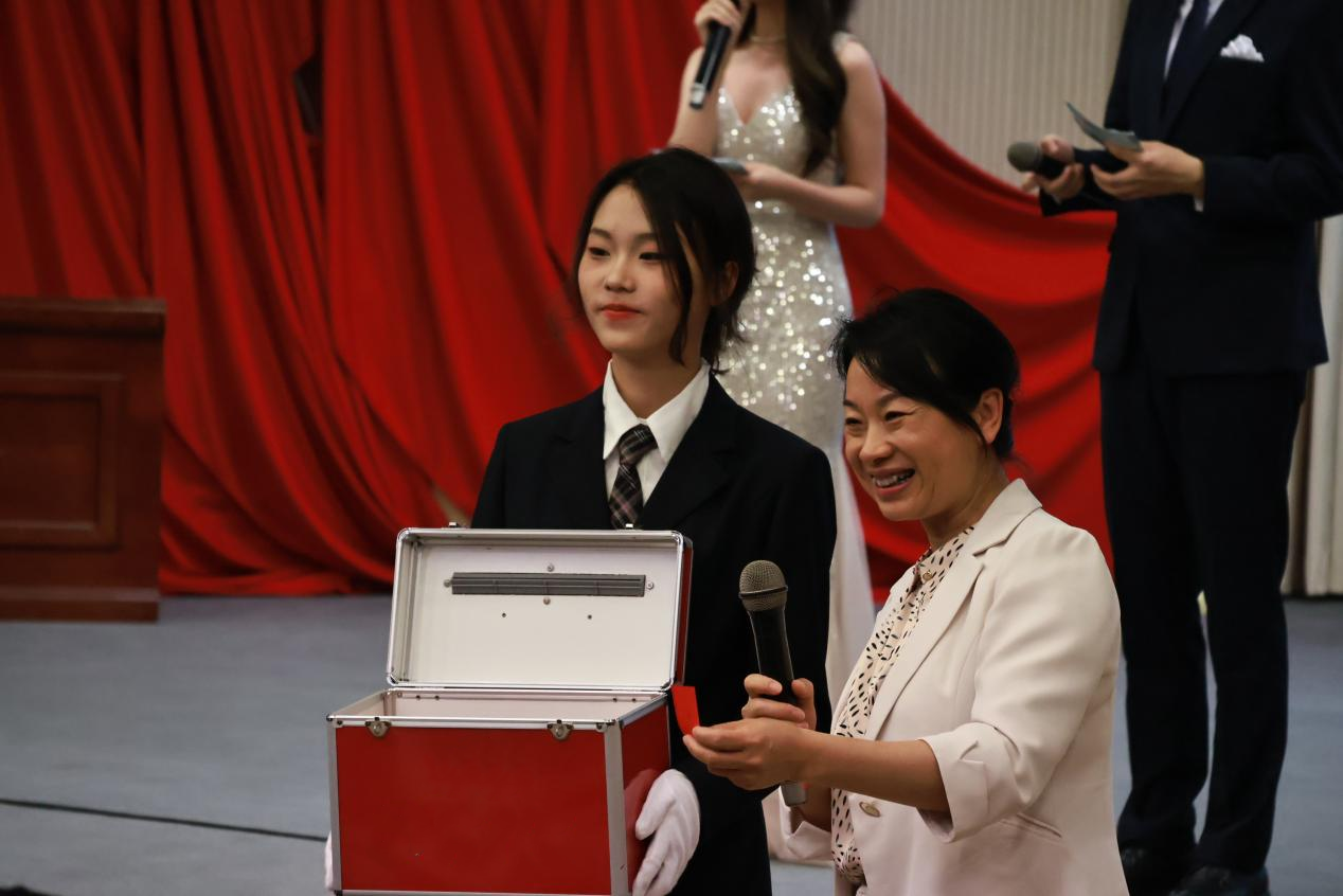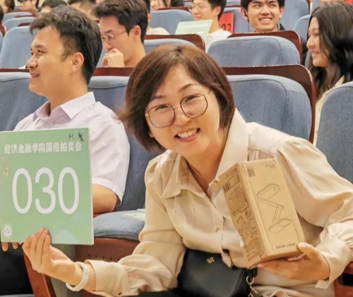 穿插其中的抽奖环节可谓是精彩绝伦。第一次抽奖由胡继平院长亲自抽取。巧合的是,胡院长抽中了30号,而这位获奖者正是为了纪念国经拍举办了30届而特意拿了30号的经院党总支副书记阴医文老师,多么巧妙的缘分。随后毕雁英副院长抽取了两位幸运儿,每次中奖号码的公布都是心跳的加速,在这个值得纪念的夜晚,大家收获了拍品、幸运和快乐。