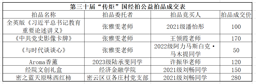 本次拍卖会共有四组拍品:纪念拍品、非物质文化遗产拍品,公益拍品和现代拍品。现场竞拍氛围热烈,老师同学们认真地聆听物品介绍后,争相出价。经过激烈紧张的竞拍环节,最终以5285元的总成交额全部拍出。
